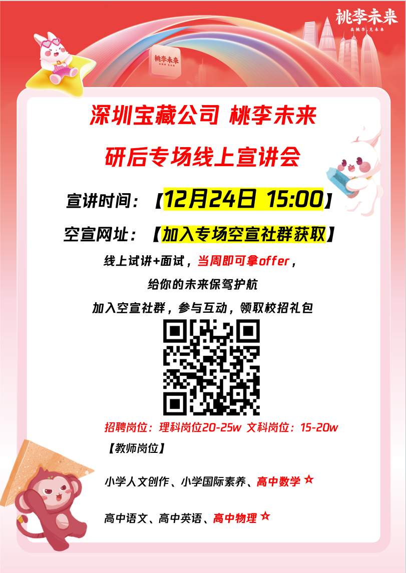 桃李未来2026届秋季校园招聘空宣时间:11月12日下午5点半准时直播空宣地址:https://live.bilibili.com/3356592进群获取更多校...
