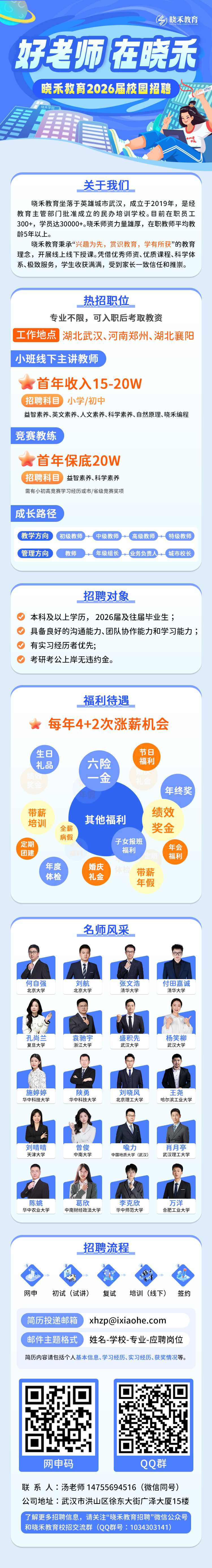晓禾教育2026届校园招聘【教学管培生—天津大学专项计划】线上宣讲会:10月30日(周四)16:00腾讯会议:428-314-670不限专业,不限教资一、我们是...